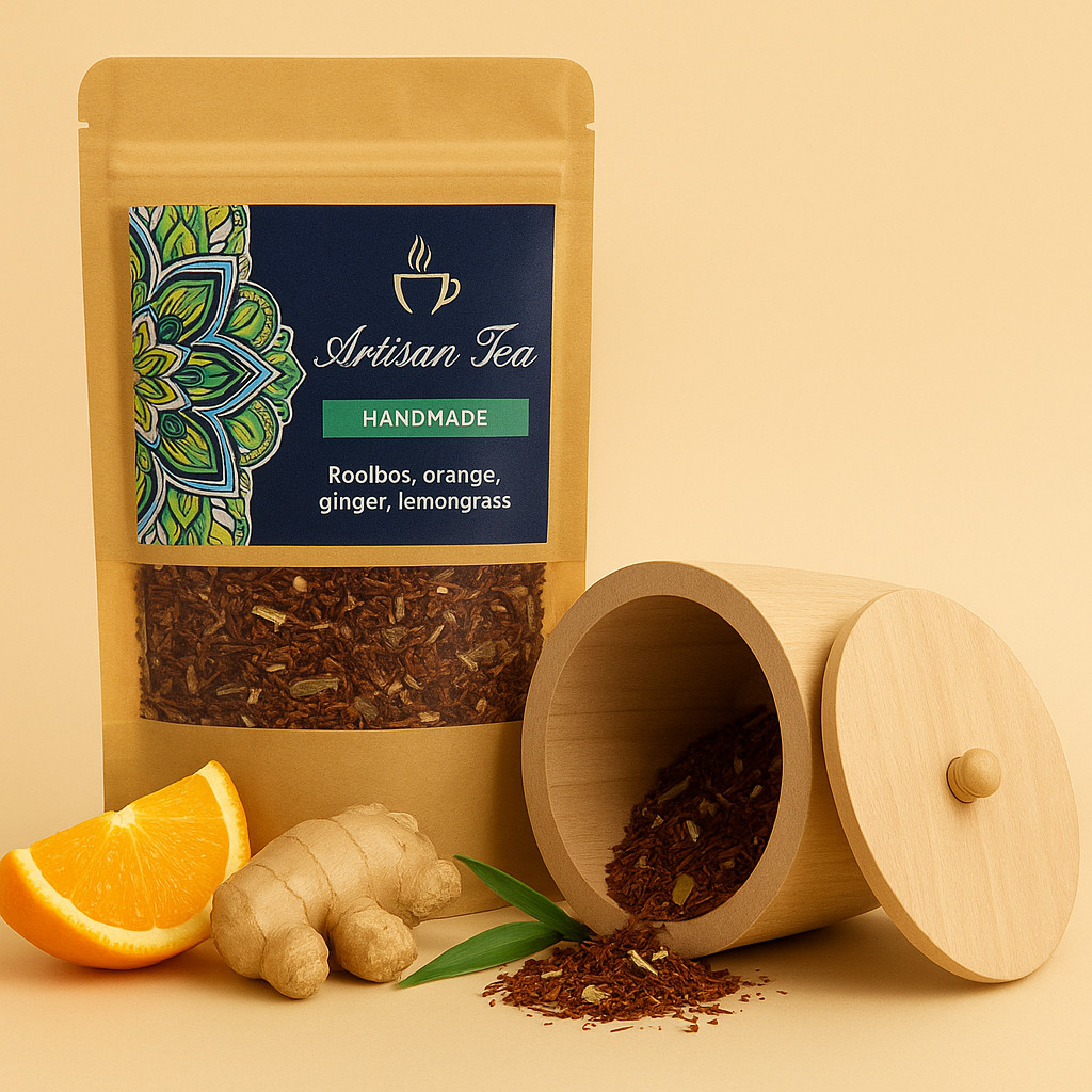 Összetevők: rooibos*, narancs*, gyömbér*, citromfű*