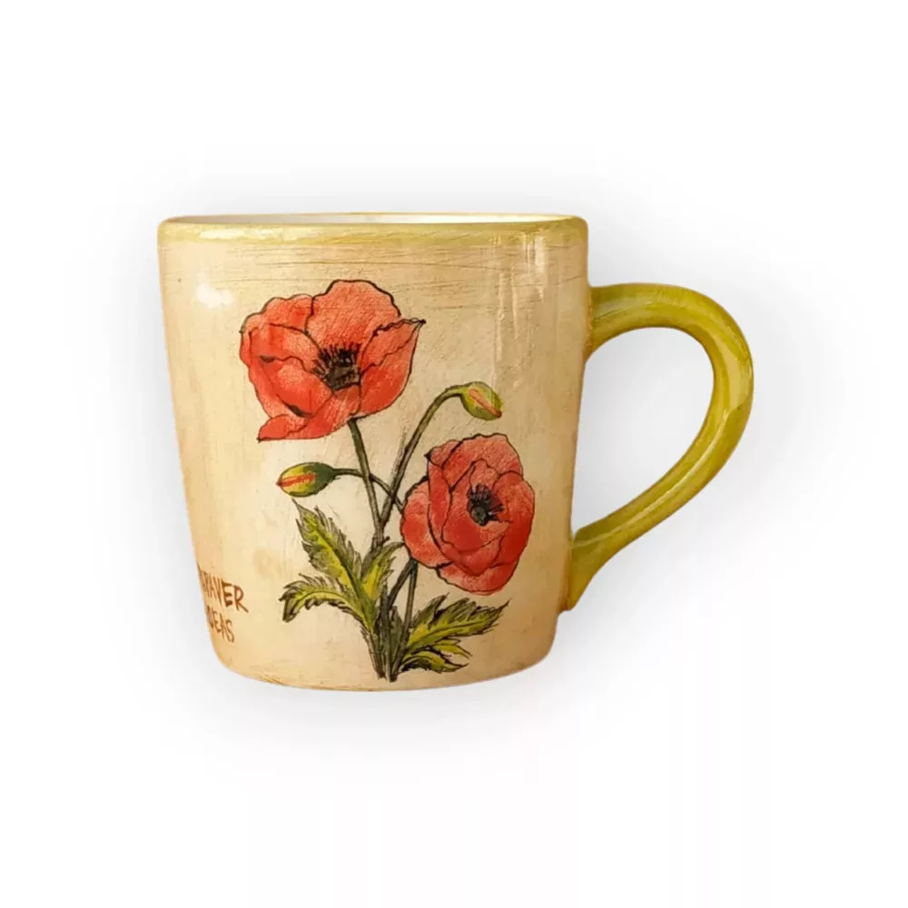 A pipacsos kerámia bögre a természet egyik legszebb virágát idézi meg, élénk színekkel és finom, kézzel festett részletekkel. Ez a bögre nem csupán egy használati tárgy, hanem egy személyes, kézműves kávés és teás bögre, amely örömet szerez a mindennapokban.