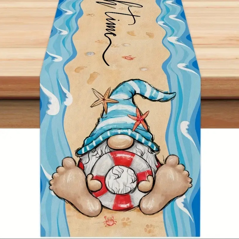 Dobd fel étkezőasztalodat vagy kerti bútorodat ezzel a különleges, rusztikus farmhouse stílusú asztali futóval! A 33×121 cm méretű dekoráció egyedi mintázatával – vicces gnóm, mentőkötél és óceán hullámok – garantáltan mosolyt csal az arcokra és egyedivé varázsolja a terítéket.