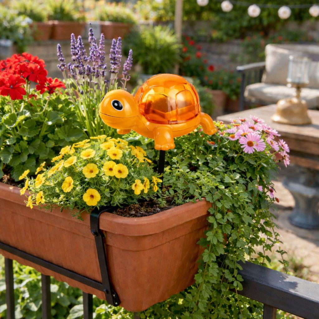 Ha szereted a vidám, meleg színeket, akkor ez a narancssárga teknősbéka garantáltan elnyeri majd a tetszésedet. Ez a leszúrható figura nemcsak egy látványos kerti dísz, hanem egyúttal egy megbízható fényforrás is, amely a nap energiáját hasznosítva teszi látványossá az éjszakai kertet.