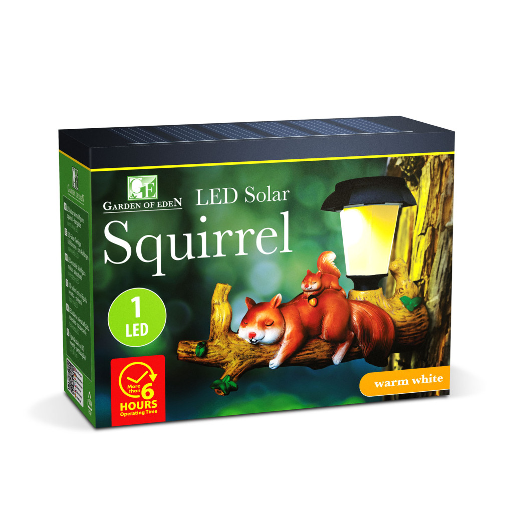 Csempéssz egy kis játékosságot és meghitt fényt a kertedbe ezzel az aranyos, LED-es szolár mókus figurával! A részletgazdag kialakítású, faágon pihenő mókus nemcsak nappal mutat dekoratívan, hanem sötétedés után is életre kel melegfehér fényével, így varázslatos hangulatot teremt teraszon, erkélyen vagy a kert bármely pontján.