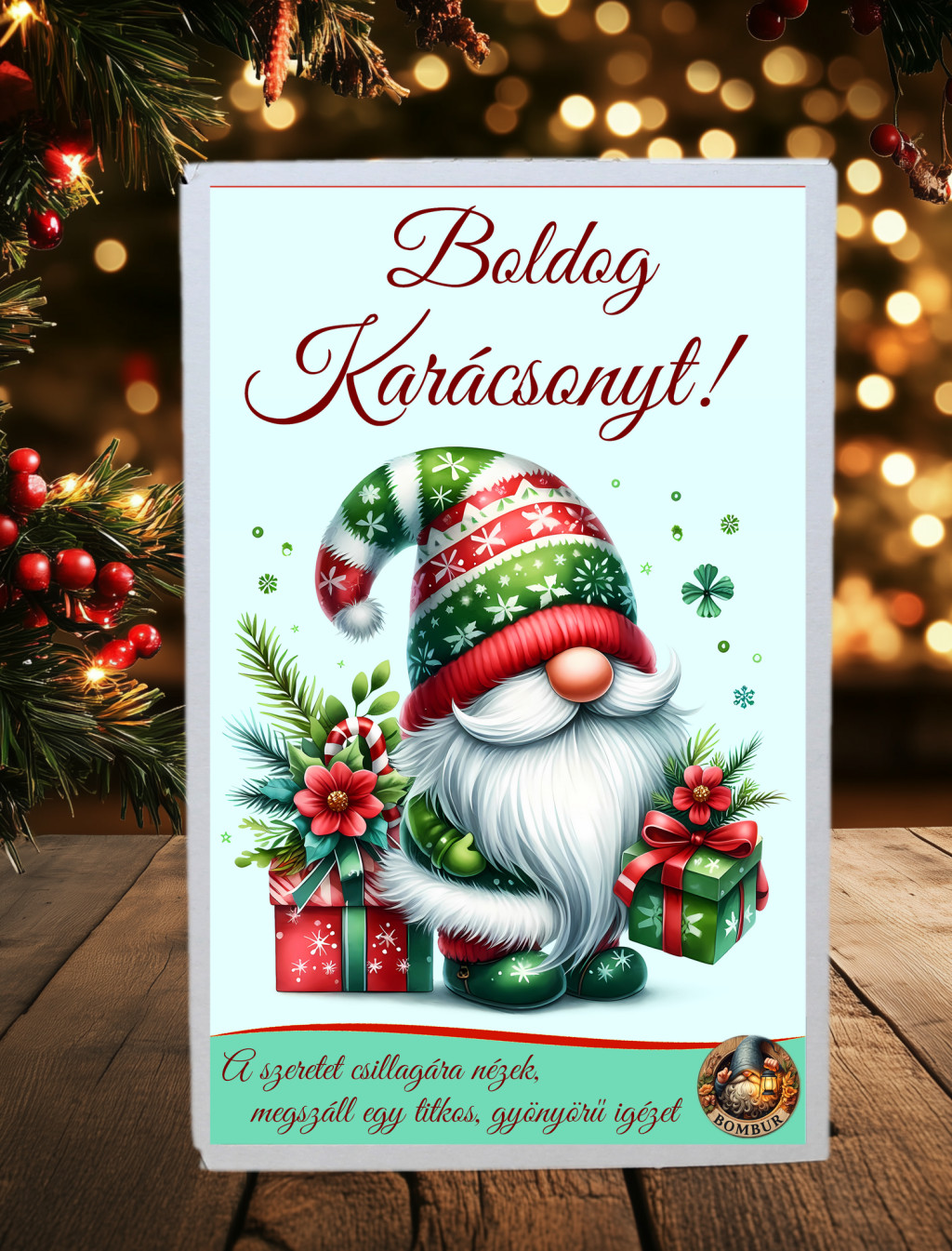 Elegáns, karácsonyi csomagolás: A díszdoboz ízléses mintával és ünnepi felirattal készül, így ajándéknak is tökéletes.